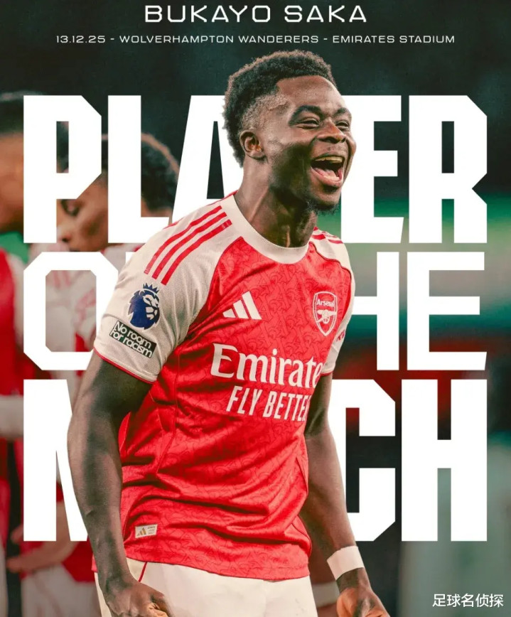 官方:萨卡被阿森纳票选为了全场比赛最佳球员。官方评选的最佳也是萨卡!